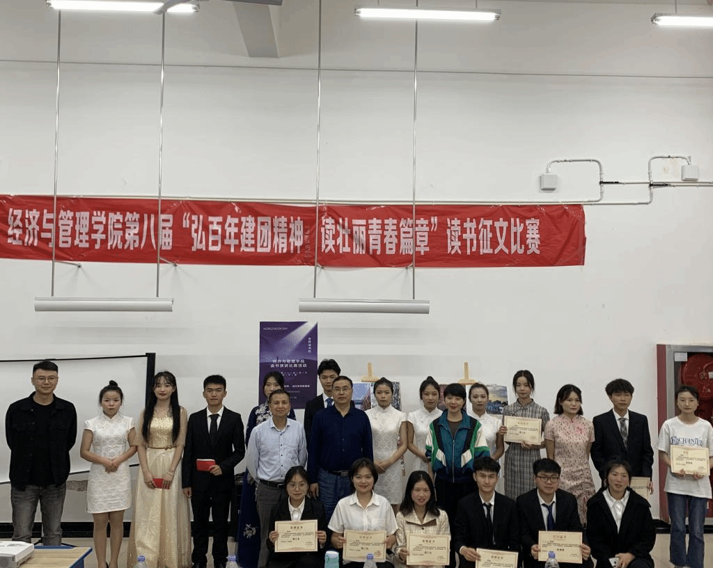 为进一步提高大学生的综合素质,构建文明和谐的校园环境,形成良好的校园风气,2022年4月25日经济与管理学院在顺理楼1-28教室举办了“弘百年建团精神,读壮丽青春篇章”读书征文决赛。经济与管理学院党委书记赵世钊、专职副书记周彰波、团总支书记杨睿、辅导员刘煜上、教师于謇担任比赛评委,学生会成员、读书协会成员以及各班学生代表参与。