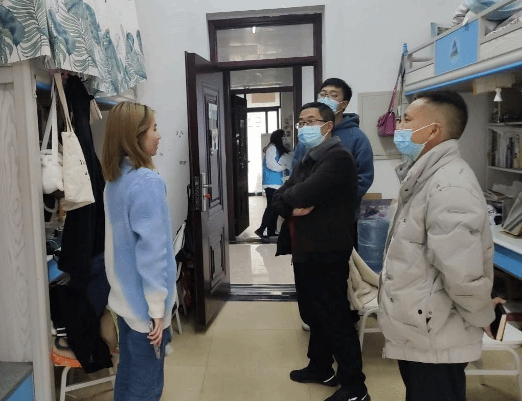 在宿舍走访的过程中,领导老师们与同学们亲切交谈,深入关心了解同学们的学习生活情况,针对同学们的问题给出意见建议;仔细检查宿舍电线网线等设施设备,排查存在的安全隐患;强调甲流的注意事项,要求同学们注意宿舍卫生,加强体质锻炼;并提醒同学们注意防范电信诈骗,提高自身安全防范意识。