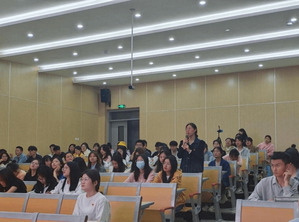 首先,学生党员蒋念帅同志进行了学习党的二十大精神的党课宣讲。随后,在场所有同学共同观看了视频《张桂梅的入党初心》,并分享了感悟。而后,在场同学一起做了名为“猜猜这是谁”的小游戏,即在场同学根据入党志愿书的片段内容,猜测是哪位党员同志曾经写下了这份入党志愿书,并邀请这位党员同志谈感悟和体会。有的党员表示,看到自己的入党初心非常感慨,自己将继续不忘初心、砥砺前行;有的党员则表示,看到自己曾经写在入党志愿书上的内容,意识到当时自己的境界还不够高,对入党的认识也不够全面,接下来,会更加努力做一名合格党员,贡献自己的力量。之后,在场所有即将毕业的党员同志集体上台抽取了属于自己的寄语卡片,学生党支部也为他们送上了纪念礼品。每一位学生党员都认真朗读了自己抽到的寄语,并分享了自己的感悟。