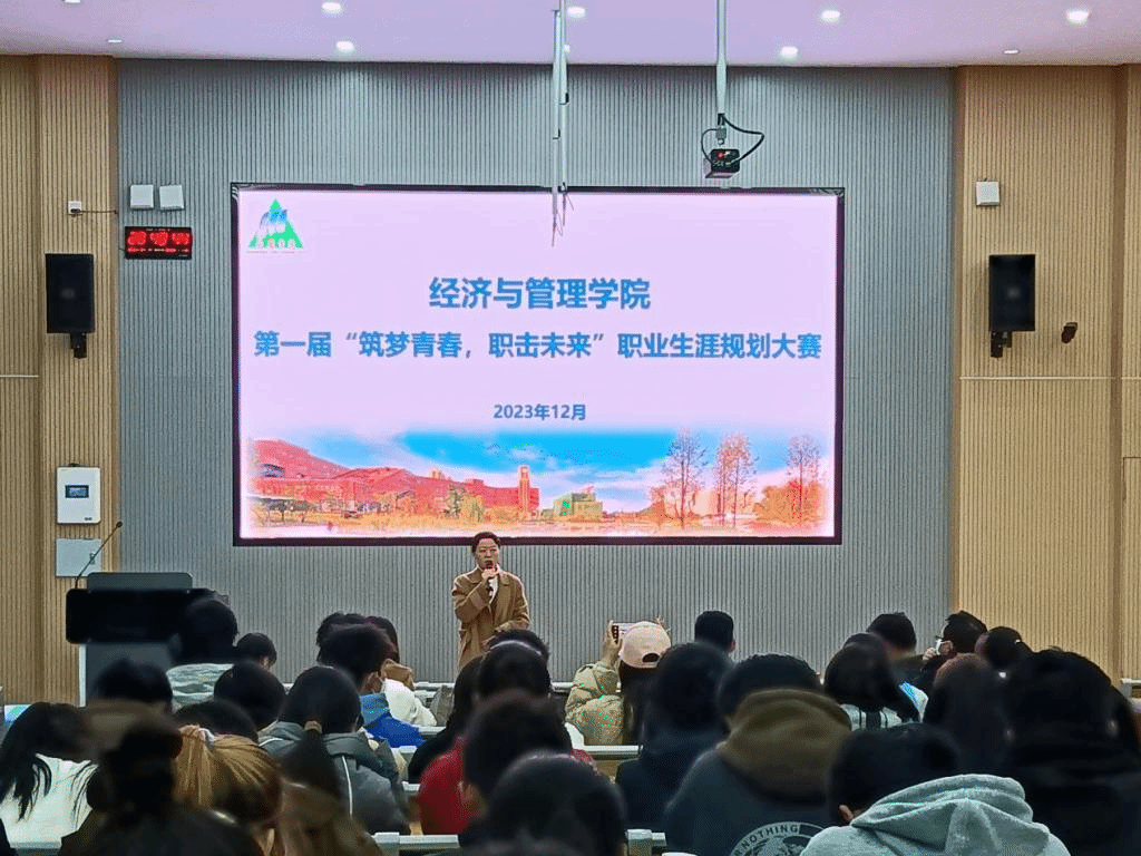 为进一步加强我院学生生涯教育和就业指导,增强大学生生涯规划意识,帮助学生认知自我,精准定位职业目标,提升其就业竞争力,全力促进毕业生高质量充分就业。12月7日,经济与管理学院首届“筑梦青春,职击未来”职业生涯规划大赛成功举办。经济与管理学院党委书记张红霞、院长赵世钊、副院长曹凯旋、团总支副书记杨睿和胡晓青老师、王典雪老师、张弛担老师任此次大赛的评委。辅导员罗迅和我院大一大二学生现场观赛。