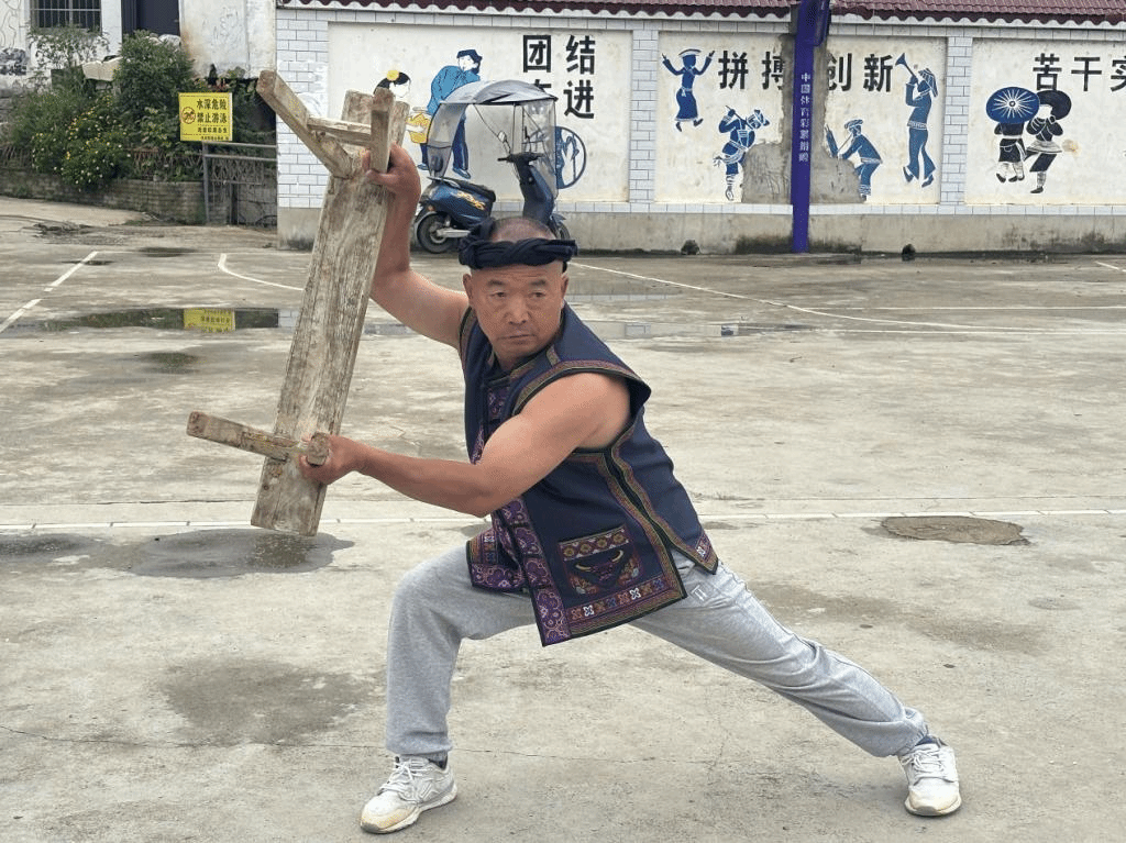 活动现场,仡佬族板凳舞表演者悄然就位,吸引了众人的目光。板凳舞是仡佬族文化传承的重要载体,无需音乐伴奏,全靠表演者默契配合来形成节奏。文化传承人手持长凳,动作有力,时而将板凳重重叩击地面,发出沉稳声响;时而让板凳两两交错碰撞,产生明快韵律。他们矫健的身影在腾挪翻转间,尽显仡佬族人民的热情与豪迈,每一个动作都蕴含着民族的历史记忆与精神气质。