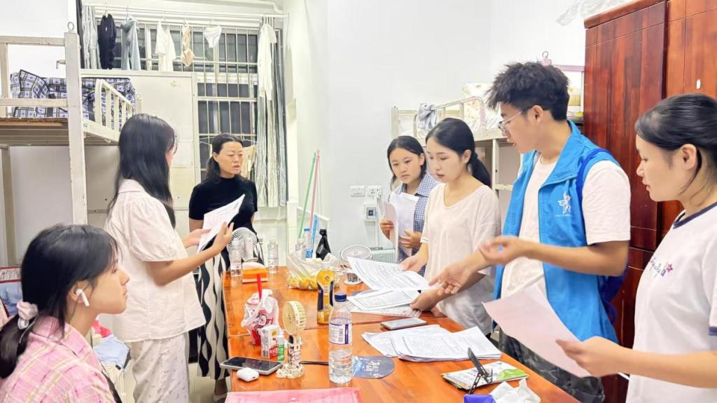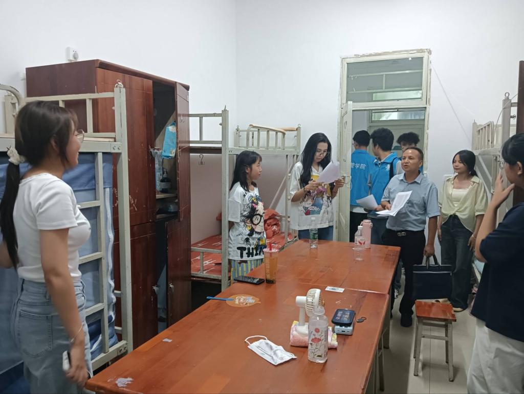 2025年9月2日晚上7点,为了解我院新生报到入住情况,帮助新生尽快融入大学生活,我院党委书记张红霞、党委专职副书记周彰波带领辅导员和新生班主任一行深入新生宿舍,开展走访慰问活动。